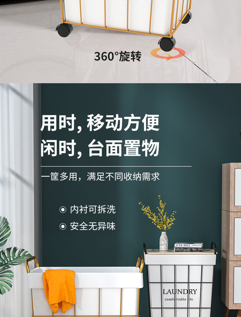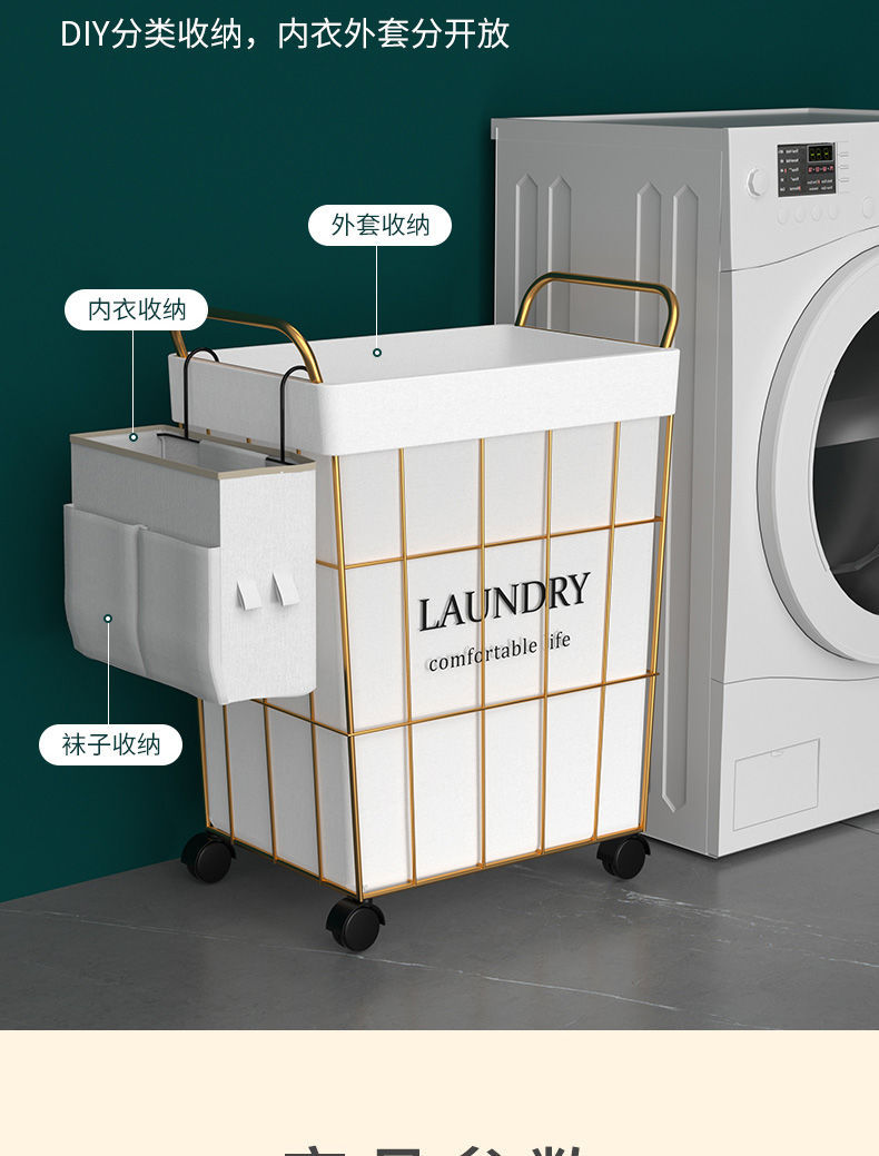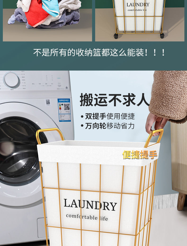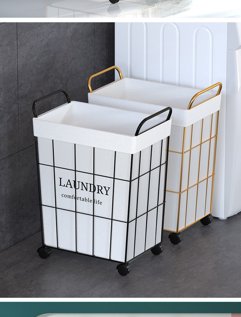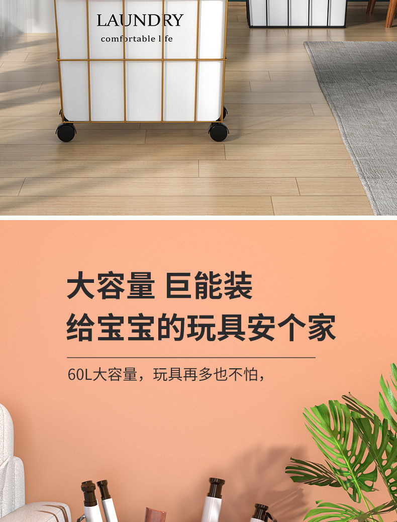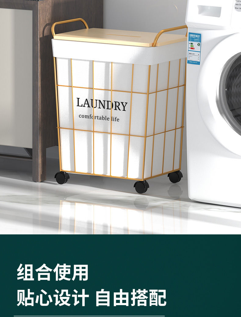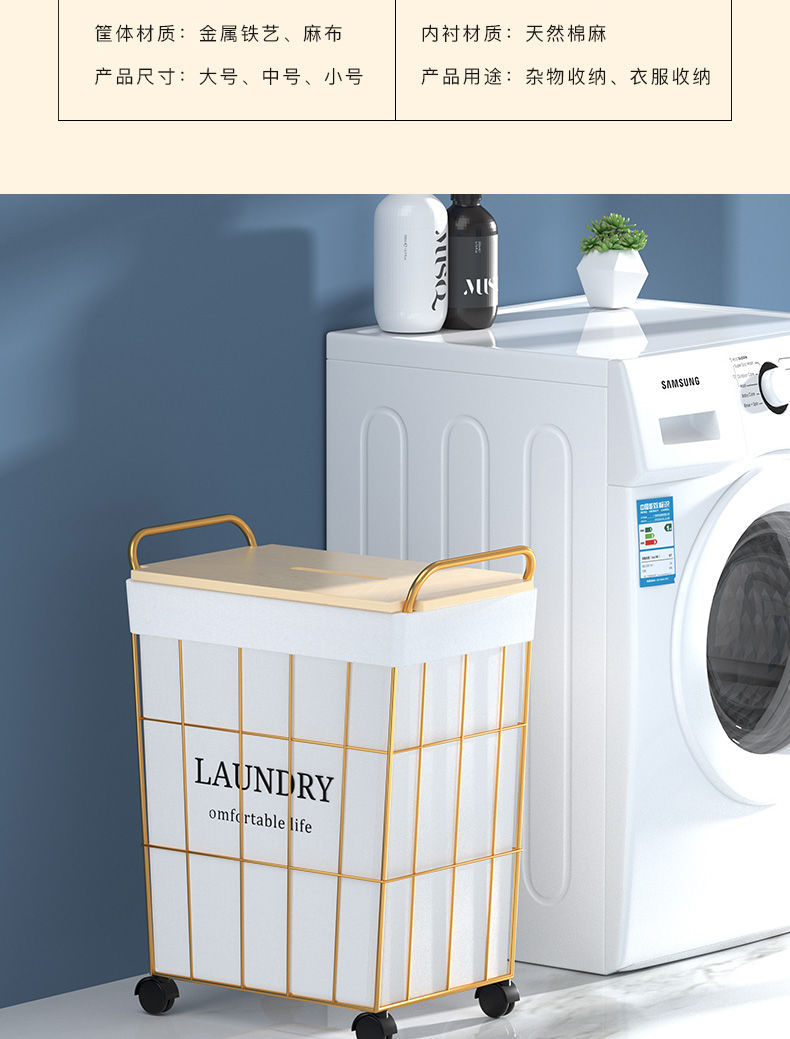With Cover And Wheel Storage Basket Large Toys Home Laundry Basket Iron Pulley Bathroom Simple Storage Laundry Basket